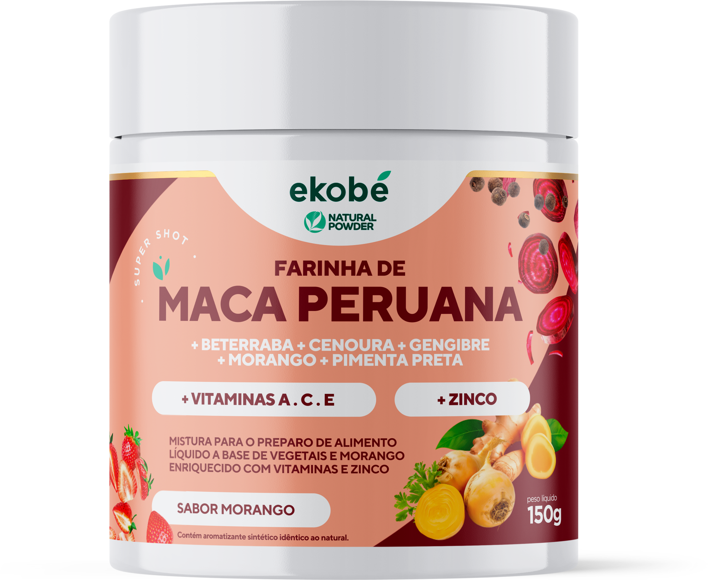 Ingredientes: Maltodextrina, beterraba em pó, cenoura em pó, morango em pó, farinha de maca peruana, pimenta preta em pó, gengibre em pó, ácido ascórbico (vitamina C), bisglicinato de zinco, acetato de DL-alfa-tocoferol (vitamina E), acetato de retinol (vitamina A), aroma idêntico ao natural de morango, acidulante ácido cítrico, antiumectante dióxido de sílicio, regulador de acidez citrato de sódio e edulcorante sucralose. ALÉRGICOS: PODE CONTER PEIXE, CRUSTÁCEOS (LAGOSTAS, CAMARÕES, CARANGUEJOS E SIRIS), LEITE, SOJA E PISTACHE. NÃO CONTÉMGLÚTEN.