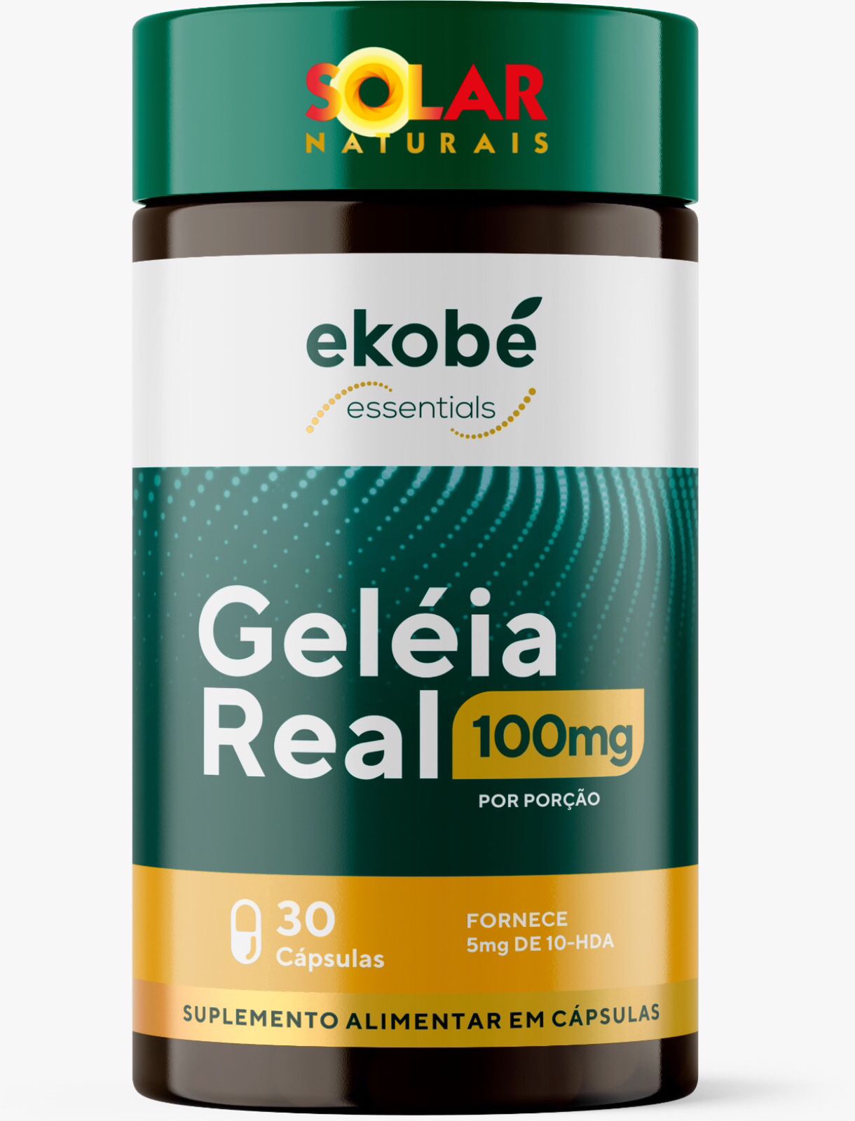 Ingredientes: Geleia real liofilizada, antiumectante dióxido de silício e lubrificantes estearato de magnésio e talco. Composição da cápsula: Gelificante gelatina e corante dióxido de titânio.